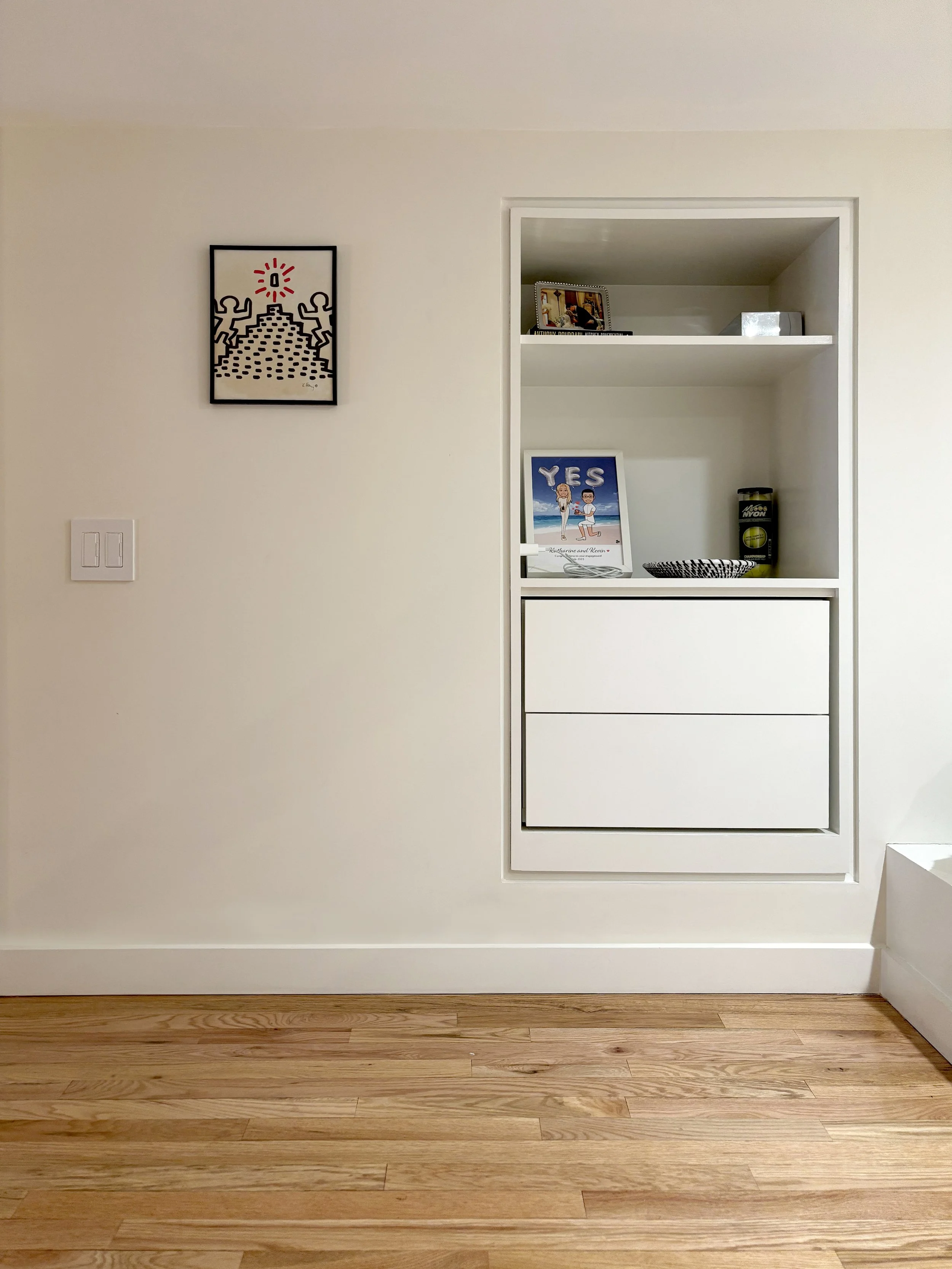 What was once a long and narrow space filled with dark storage and a tiny kitchen evolved into a streamlined setting of modern living in the heart of NoHo.