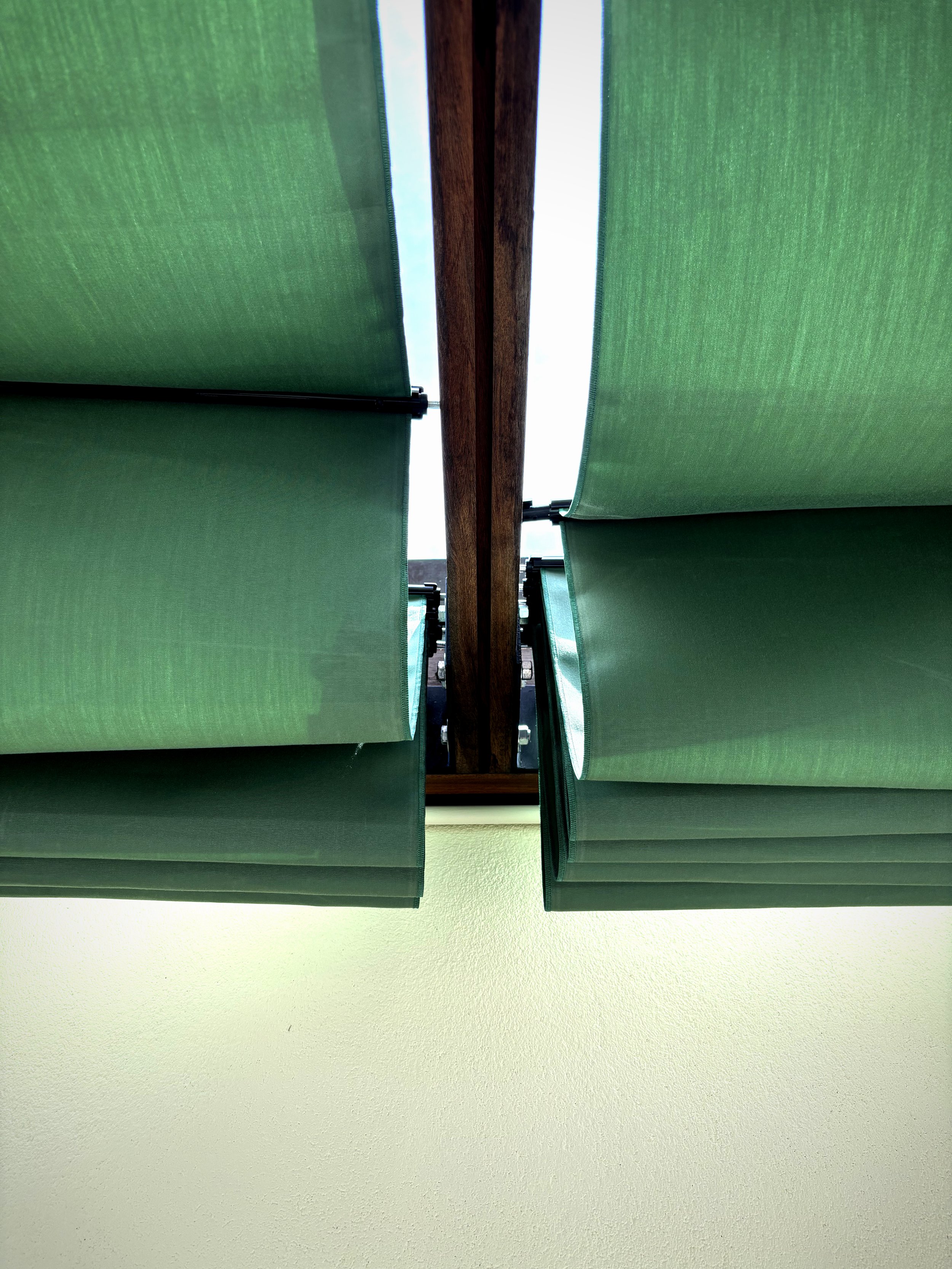 While the view to the south is stunning it also brings some direct sunlight that can be intense in the summer so a method of shading was a necessity. We worked to design a system for privacy screens and railings that was incorporated into a series of trellis-like beams supporting a retractable shade system that allowed occupants to toggle coverage to their liking depending on the weather. With space for planting and custom millwork storage, the new space should last for decades to come.