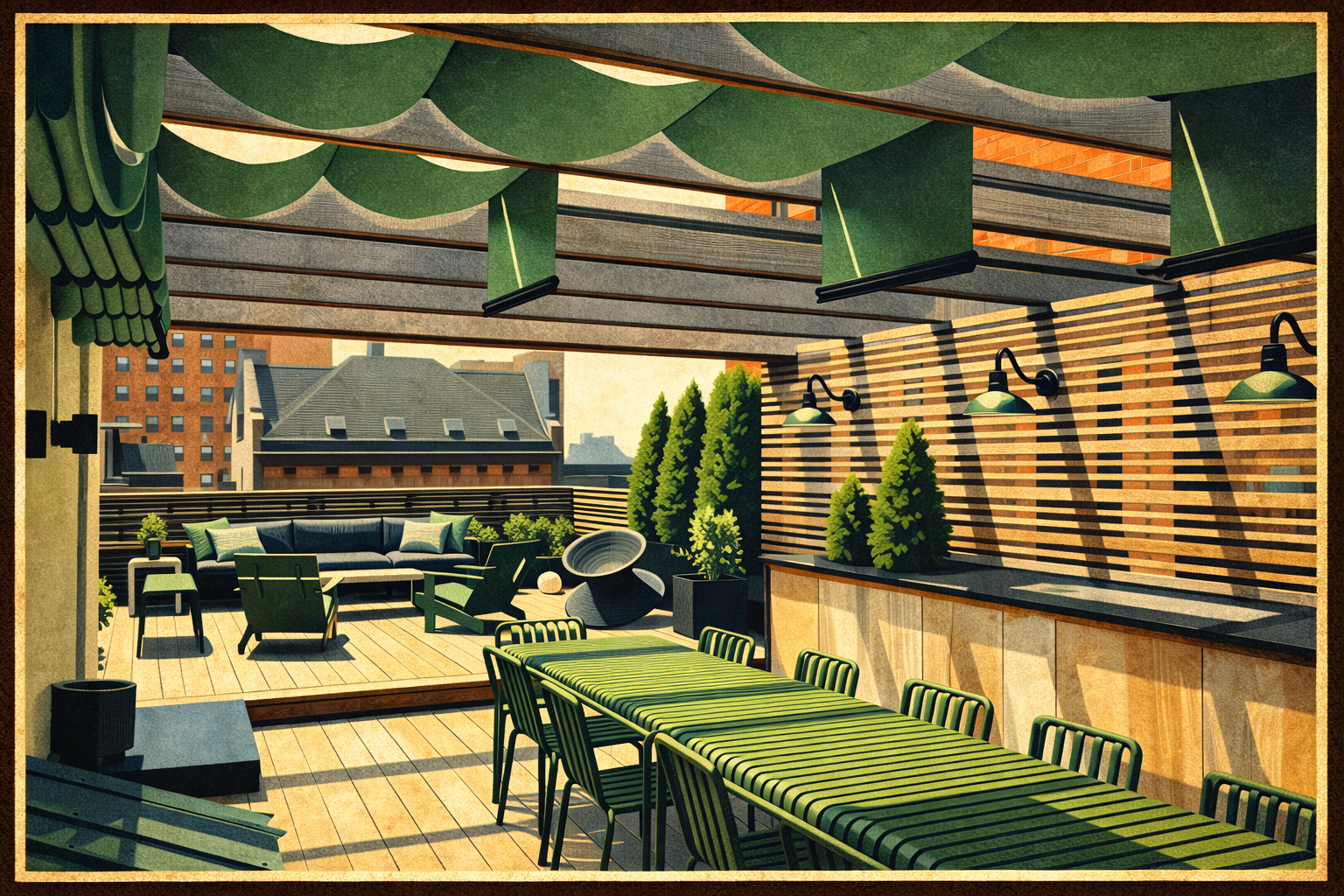 The roofscape became a project within a project. With the preamble of working with the building at large to replace the roof itself and coordinate waterproofing details, we could then step into creating a secluded haven for the clients to enjoy throughout the year. Given that the project was in an LPC district, all of the coordination for design and its approval went through their purview and our long standing working relationship with their staff and process paved the way for approval.